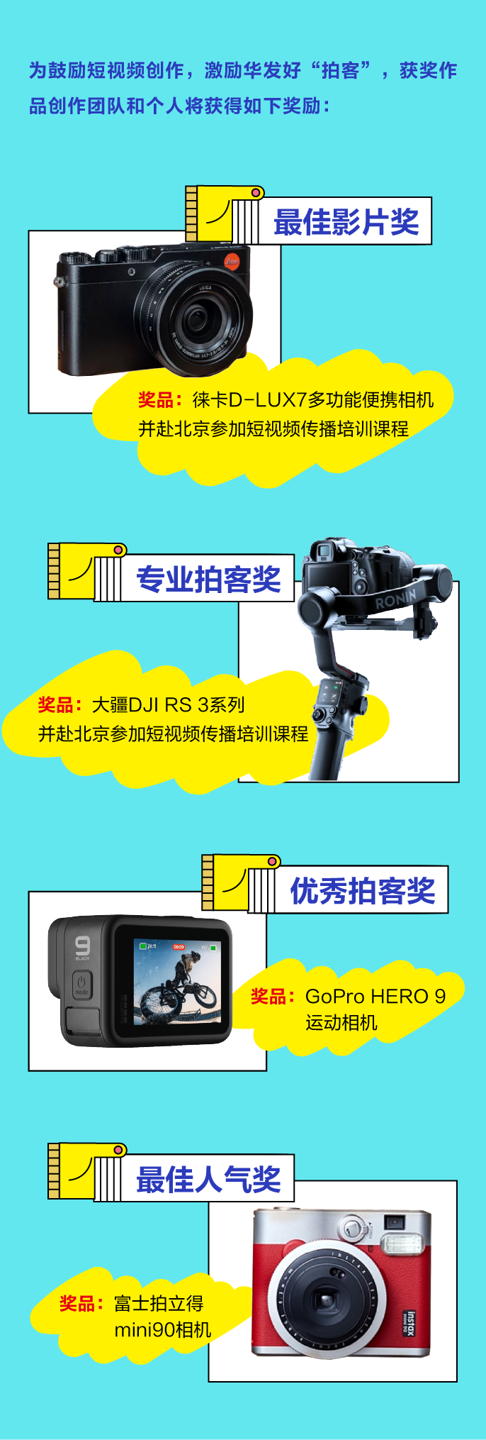 最终,三位专业评委围绕作品的主题立意、文案脚本、拍摄手法和剪辑技术等维度,评出“最佳影片奖”“专业拍客奖”“优秀拍客奖”等20个专业奖项,另据作品点赞指数,产生人气奖3名。